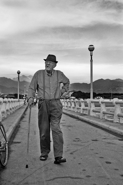 simpatica la smorfia,...ma rivela anche la drammaticità degli acciacchi del tempo...forse avrei incluso piu bicicletta cosi da centrare un po piu l'uomo,...cmq ottima,..