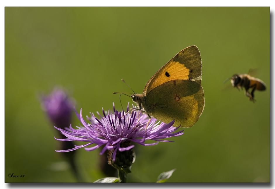 Bella la farfalla e bella la luce. Ottimo "l'intruso" sulla destra
