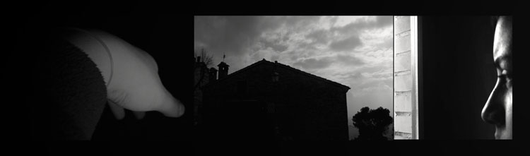 Immagine orizzontale giocata tutta su una serie di rimandi visivi.. mi piace lo sguardo diretto verso quella casa così scura al centro del fotogramma, perfetta nella presenza anche del cielo così grigio e carico di nuvole.. anche quelle costruzioni che si intravedono, arricchiscono l'immagine di una strana atmosfera.. mi piace la zona di luce che si vede a sinistra del viso.. ci consente di capire che si sta spiando da dietro a qualcosa, un muro forse..