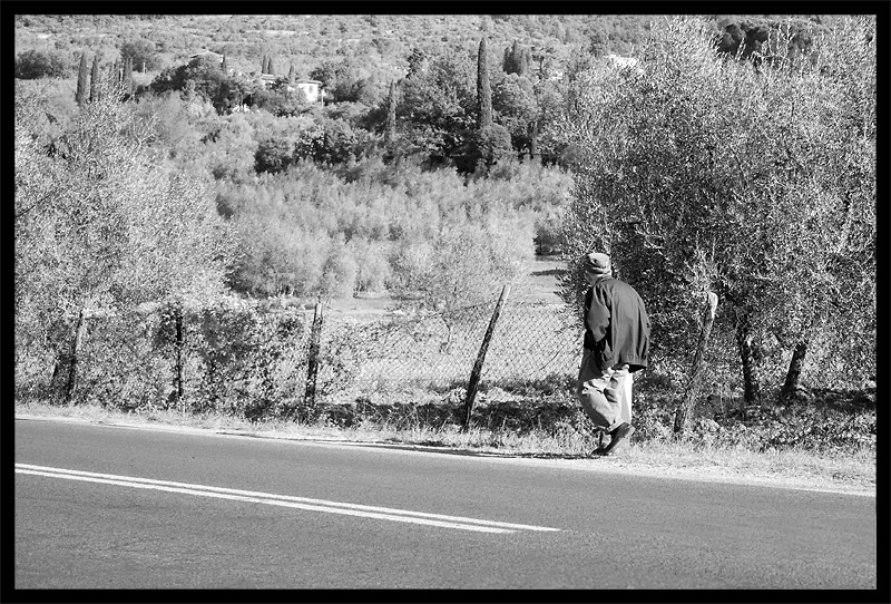 dovevi inquadrare più da vicino il viandante e in prospettiva la strada, ma penso che prima hai fatto la foto e poi ti sei inventato il titolo. Come al solito usi il bianconero credendo di "sentirti più fotografo" e invece peggiori solo la qualità della foto _________________ Stregatto |