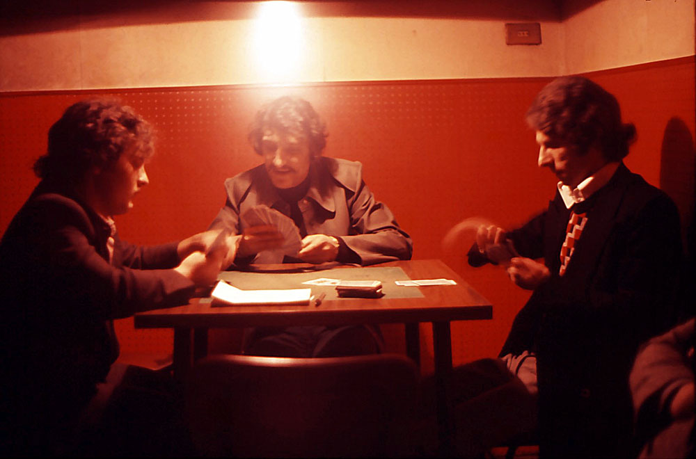 amici ripresi a loro insaputa durante una partita a carte .