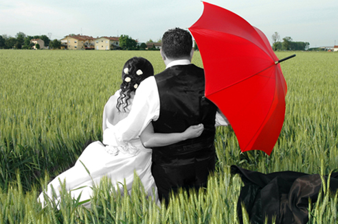 Grazie Massimo,ma l'ombrello giustamente poco credibile in una giornata di sole l'ho messo per contrastare con il verde del grano e gli sposi in bianconero