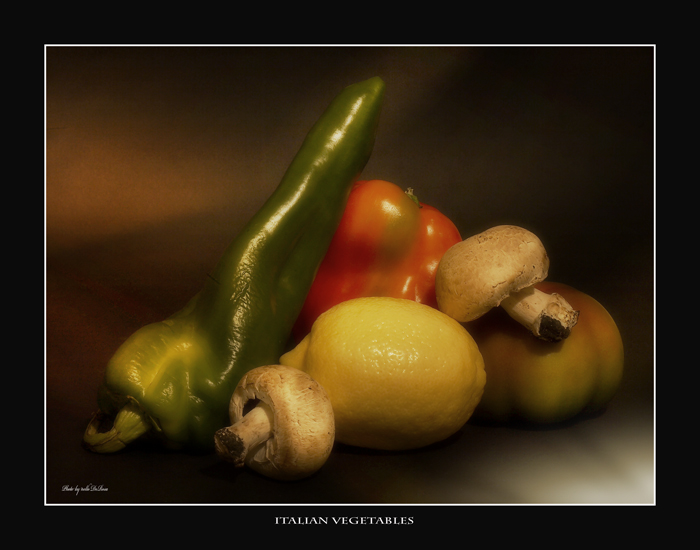Molto ben gestita la luce, pw evidente che in più occasioni disturba... a livello compositivo non vedo il peperone verde, decisamente scuro,abbassa la resa tonale sbilanciandola troppo nella parte sinistra.
