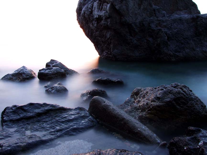 Personalmente non mi convince il cielo bruciato dietro lo scoglio più grande...