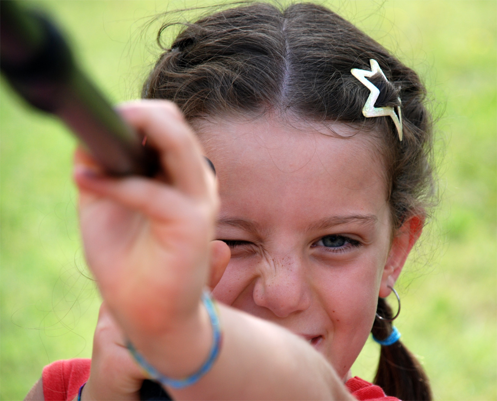Dille per esempio che vuoi fare un gioco, una gara... tu fai uno scatto a lei e lei uno a te per poi vedere chi è stato più bravo... oppure dille che hai intenzione di fare un mini book fotografico che poi potrà far vedere alle sue amichette... insomma ne volessi di metodi, quel che conta è riuscire a stimolare la sua curiosità sfruttando la sua voglia di giocare... e poi considera che almeno avrai qualche tuo ritratto visto che noi fotografi difficilmente siamo fotografati