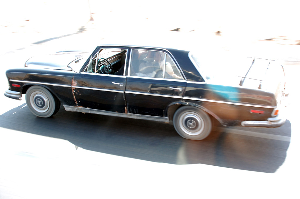Una specie di panning così bruciato che non si vede nemmeno il tetto della macchina.