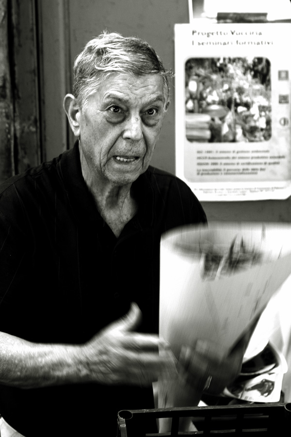 mi fa morire l'aspressione del venditore!!!!ottimo effetto del movimento e viso perfettamente a fuoco...bianko e nero perfetto..