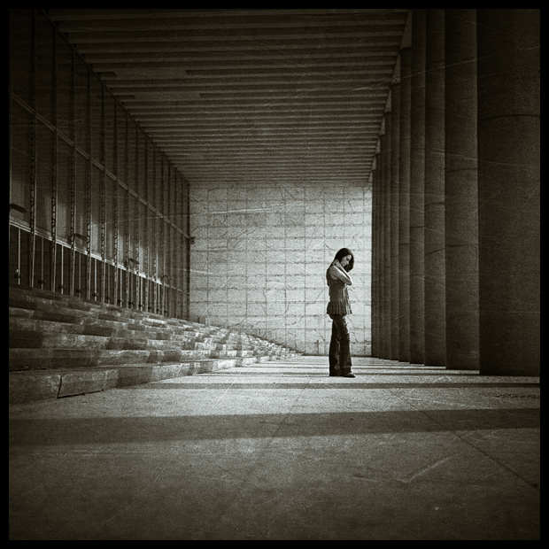 Anch'io penso che una immagine potente viva di vita propria, la bellezza non c'è texture che possa rovinarla....... al massimo può interpretarla, inserirla nello stato d'animo del momento... Questa tua è estremamente armoniosa e la ragazza è il fulcro dell'attenzione, nonostante la relativa piccolezza......sovrastata e circondata da ombre, curve e geometrie.