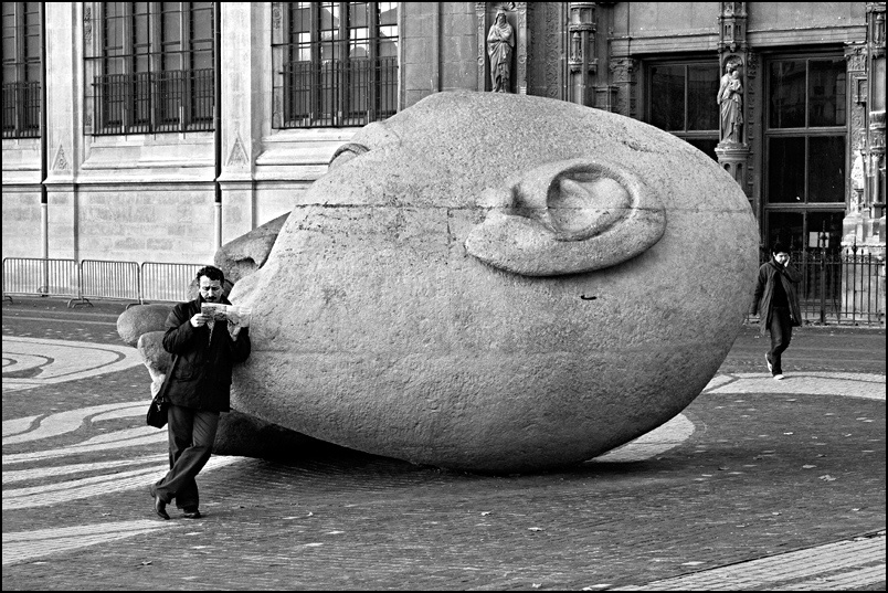 forse ancora meglio senza l'ultimo "fettina" a dx, solo l'uomo e la scultura.