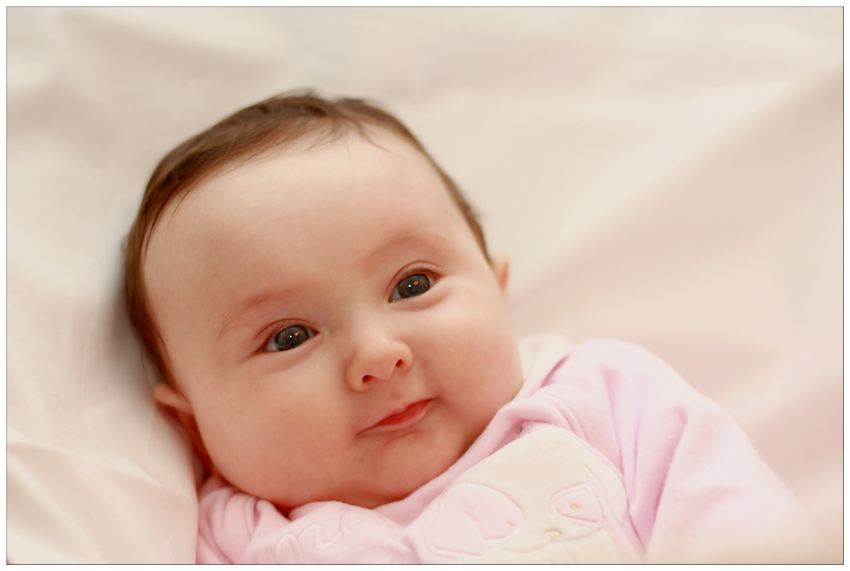 ad un livello superiore, invece, parlando del pre-scatto, quello che un po' si vede e che è lasciato un po' in secondo piano, è l'appoggio della bimba sul cuscino: sembra un po' troppo in obliquo, in una sorta di instabilità precaria...