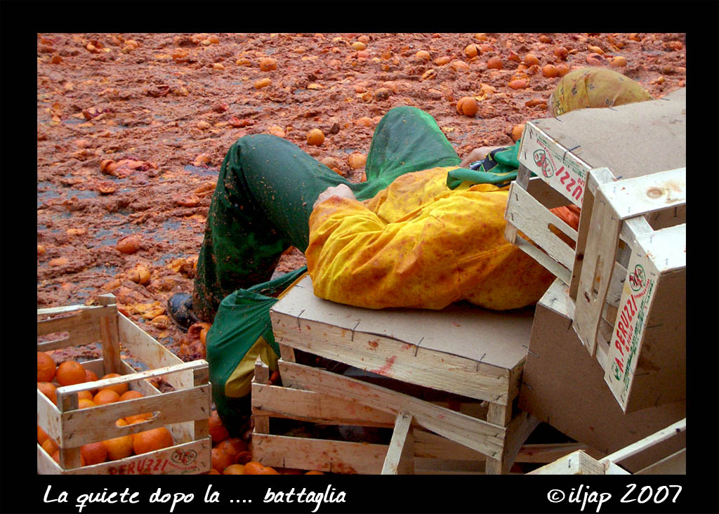 fantastica foto, momento ben catturato....devo andarci anche io ad Ivrea...non l'ho mai vista sta battaglia di arancie...aiiii....spero di non beccarle....(per quest anno mi sa che l'ho gia persa...vabbe, sarà per la prossima) Ok!