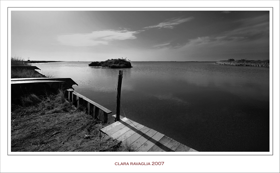 Stavolta sono in difficoltà ad entrare in sintonia con la tua immagine, cosa che solitamente mi viene facile... non riesco proprio a leggerla, e la conversione in b/n, pur essendo realizzata bene vista la luce in gioco, mi ostacola ulteriormente: quel pontile mi ancora lo sguardo, appena lo alzo i riflessi sulle barche capovolte mi portano fuori dall'immagine; tutta la parte destra mi diventa aliena...
