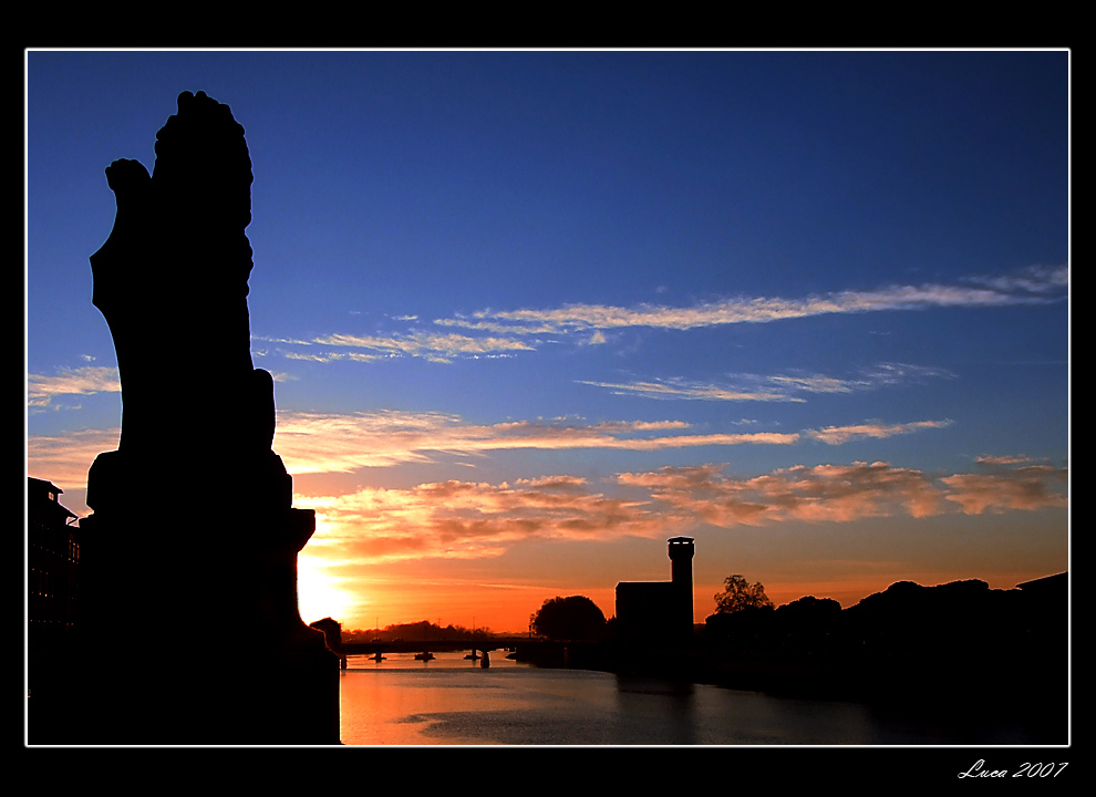 silhouettes degli alberi a destra fino al tetto degli Arsenali Medicei - e in realtà , anche intorno al leone - ci vedi una sorta di linea di contorno più chiara. A me questo effetto viene fuori quando applico una maschera di contrasto eccessiva, raggio superiore a 0.5 sulla foto ridotta alle dimensioni finali. Se è questo lo risolvi facilmente. Se invece lo fa la macchina in sé quando il contrasto diventa molto forte, allora non saprei proprio cosa suggerire (forse frapuchi, che è abbastanza un mago, conosce la soluzione anche in questo caso).