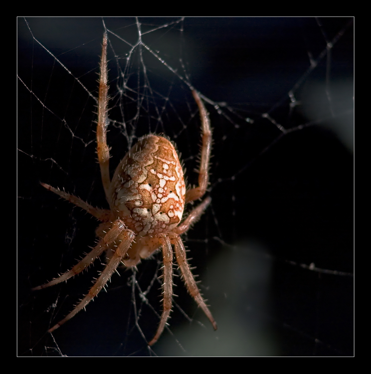 Mi piace la nitidezza di questo ragno e lo sfondo nero concordo con Pigi per la testa ciao
