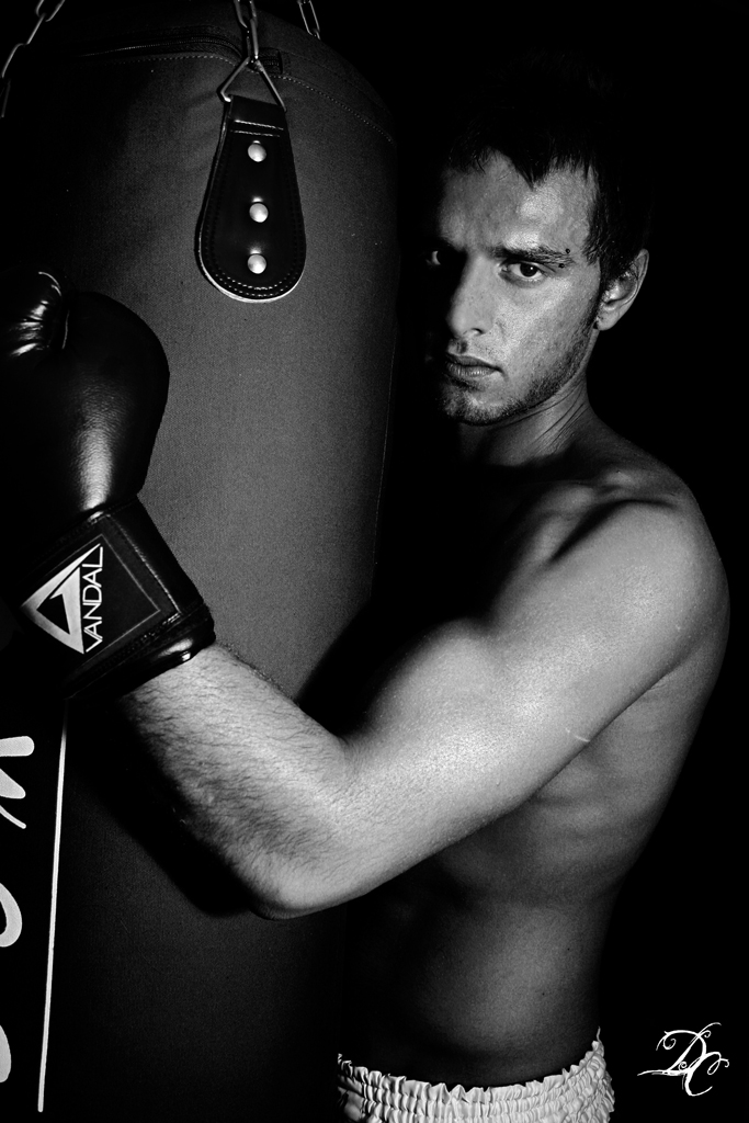 Il b/n non è male, ma come composizione mi dispiace che sia stato tagliato il guantone, e comunque fermo restando che possa piacere, avrei clonato la catena in alto a sinistra e il testo tagliato sul saccone... sul naso hai utilizzato molto probabilmente un timbro clone con pennello morbido, per cui perde di nitidezza rispetto al resto della foto. Forse un'inquadratura leggermente più larga avrebbe reso meglio questo scatto.