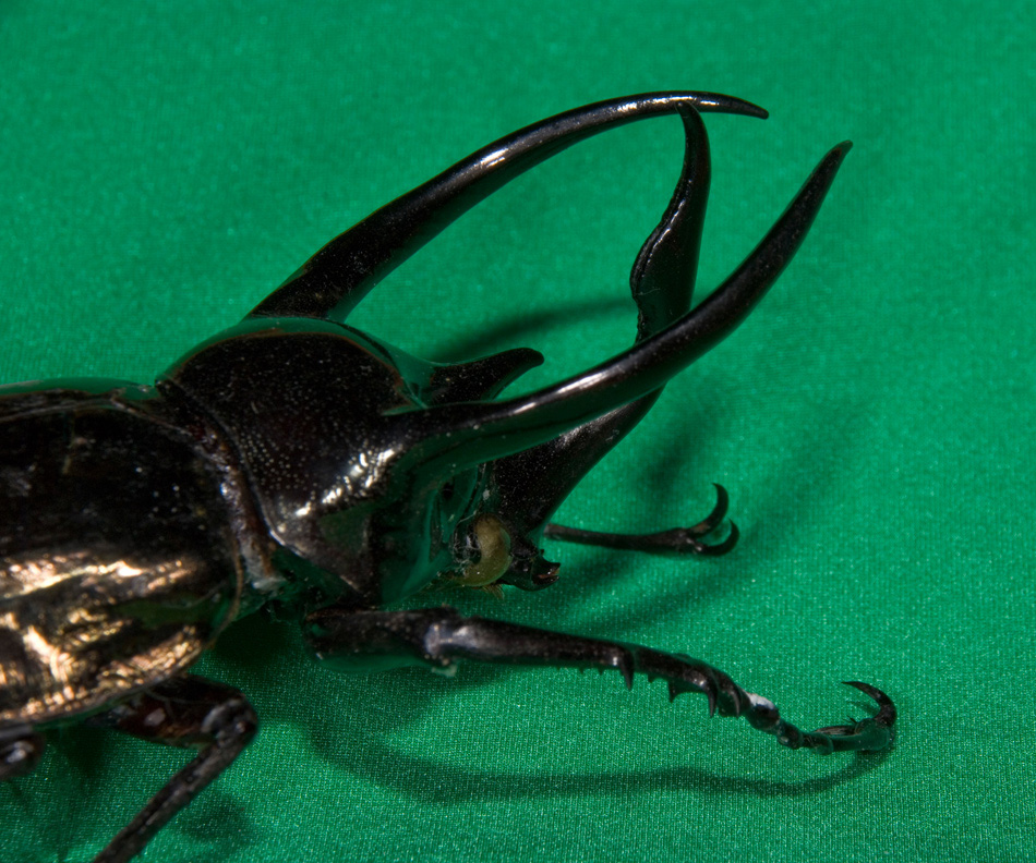 Mamma che bestiaccia!!! Visto nella mano fa una certa impressione. Forse dovevi dedicare più cura al primo scatto, una maggiore pdc, visto che è piuttosto grande e un uso migliore della luce. Se l'hai immortalato (scusa il gioco di parole) da morto potevi usare cavalletto, tempo lungo e più luci tradizionali a illuminarlo, per evitare i riflessi. Uno sfondo bianco lo faceva risaltare di più. Se lo trova mia moglie serve poi un'ottica da microscopio per fotografarlo