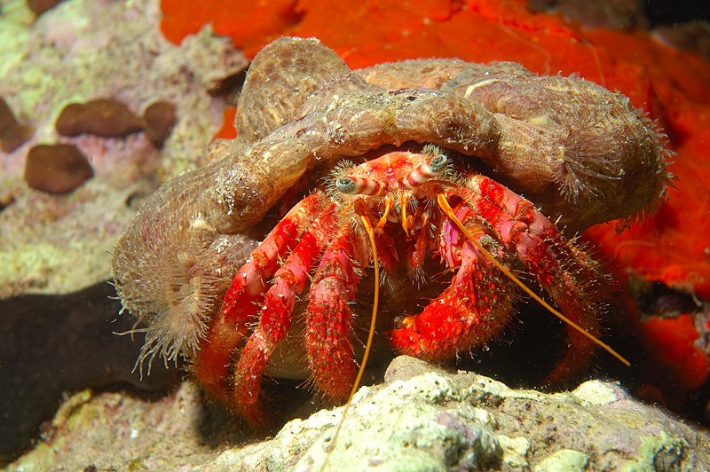 I soggetti sono "Dardanus calidus" simile a D. arrosor ma come si vede in foto ha le chele pelose a contrario di D. arrosor che ha le chele sempre prive di peluria.