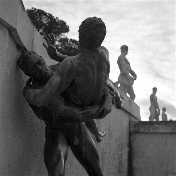 Ottima la compo con le statue sullo sfondo che si susseguono e giustificano il contesto di quelle in primo piano.