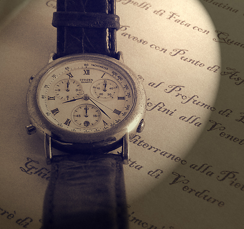 A prima vista quindi un'ottima foto di un vecchissimo Citizen appoggiato su un vecchio libro ... parla dei tempi passati, di viaggi in paesi lontani ...