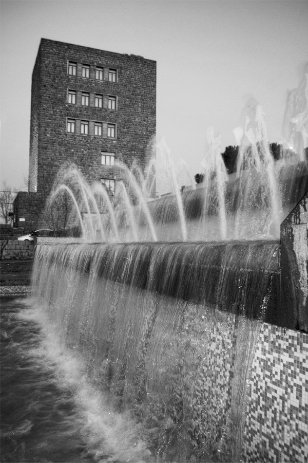 Come composizione ci siamo, non è male, anche se avrei preferito la messa a fuco sull'edificio, lasciando sfumare tutto il resto, piuttosto che cadere sulla parte destra dello scatto in prossimità della prima cascata d'acqua in basso. La flashata sul mosaico non è il massimo, c'è tanto formicolio da compressione jpg, e noto della vistosa vignettatura sugli angoli alti, ed in prossimità degli zampilli d'acqua ci sono "inspiegabili" macchie... forse per via della postproduzione? intento interessante ma scatto sicuramente migliorabile.