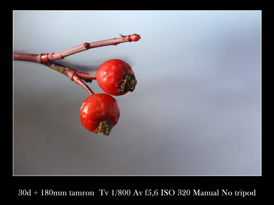Bastava forse trovare un paio di bacche piu' in salute e giocare di piu' con la composizione....e con il treppiede.....perche' scattare a f/5.6 con questo tipo di composizione e inquadratura e soprattutto perche' a 320iso con 1/800sec....non avevi il treppiede con te?