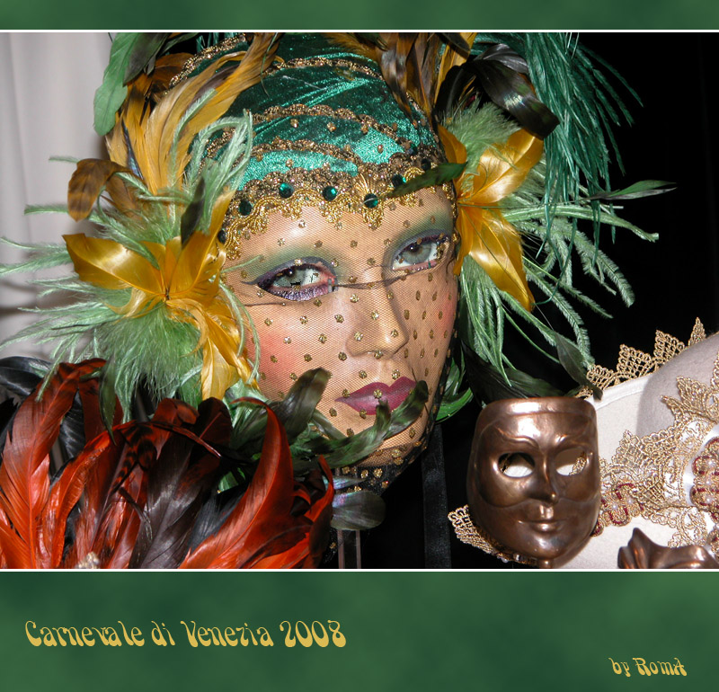 mmm.. non mi piace, la maschera ha già uno sguardo triste.. poi quel verde smorto me la intristisce ancora di più. Nemmeno il carattere che hai usato mi piace. Non ti offendere è solo questione di gusti.