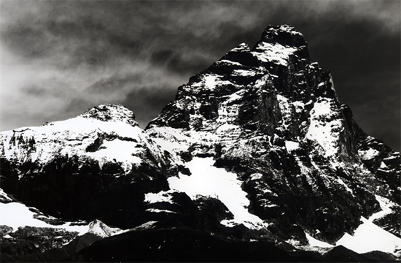 | trovo interessante questa scelta cromatica, quasi a voler mostrare solo il bianco puro e il nero più forte, per meglio evidenziare (come hai sottolineato) la bellezza e la maestosità di questa montagna, il quale purtroppo non conosco. Cerco d'immaginarmi la stampa su carta che usi nelle tue esposizioni