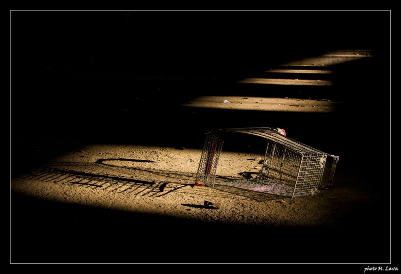 Il carrello abbandonato e l'ombra riflessa danno quel senso di abbandono che hai menzionato nell'introduzione. La sensazione è accentuata dalle cartacce sparse qua' e là e dalla mancanza della pavimentazione.