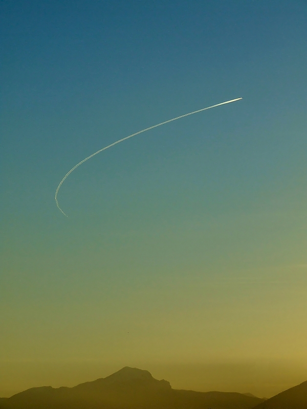 colpimenti, è davvero un bello scatto, inoltre, la scia lasciata dall'aereo, bianchissima e davvero molto nitida, mi da l'impressione o la sensazione di qualcosa di immediato, quasi fosse stato un attimo fulmineo, come un segno nervoso di una penna su un foglio...o almeno questo è quello che mi fa pensare...è davvero bella!