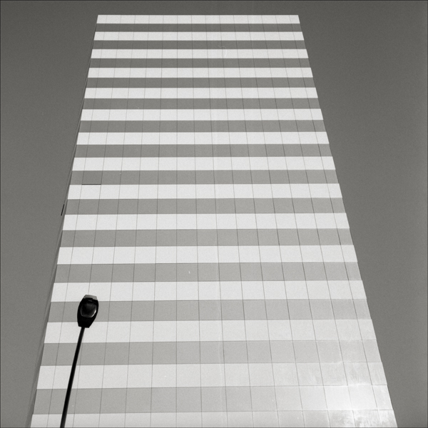 E poi sembra un muro di piastrelle, con quel gioco di luce in basso a destra, e quel lampione nero interrompe la bella successione delle linee..