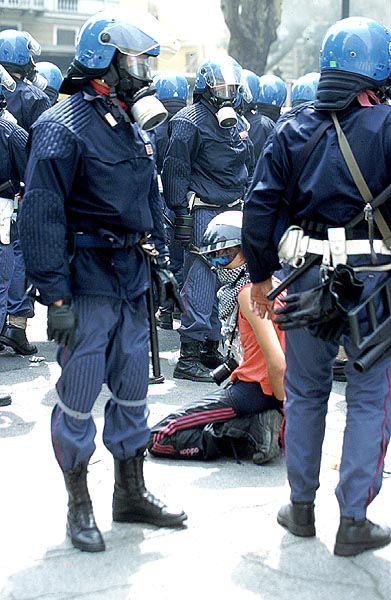Coraggioso il manifestante a portarsi "in battaglia" la macchina fotografica... e sembra pure una reflex!!!