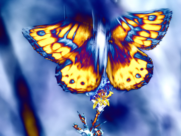 Comunque sia complimenti per i colori caldi ottenuti dalle ali della farfalla che contrastano splendidamente con il blu elettrico sullo sfondo!!!