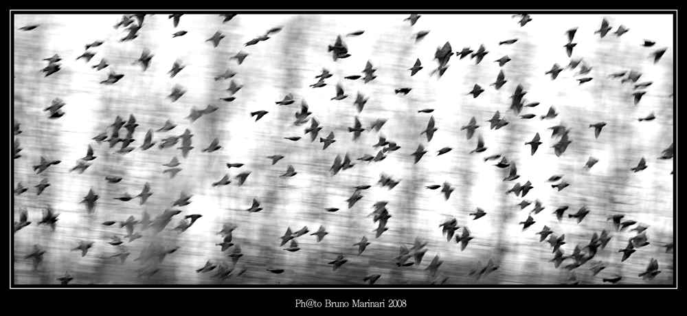 Bello scatto Uno dei tuoi migliori. Il bello è che non c'è nemmeno un uccello che è bloccato nel movimento. Di tutti si percepisce il frullare delle ali. Importante anche quella sorta di panning dello sfondo. Bravo, bravo.