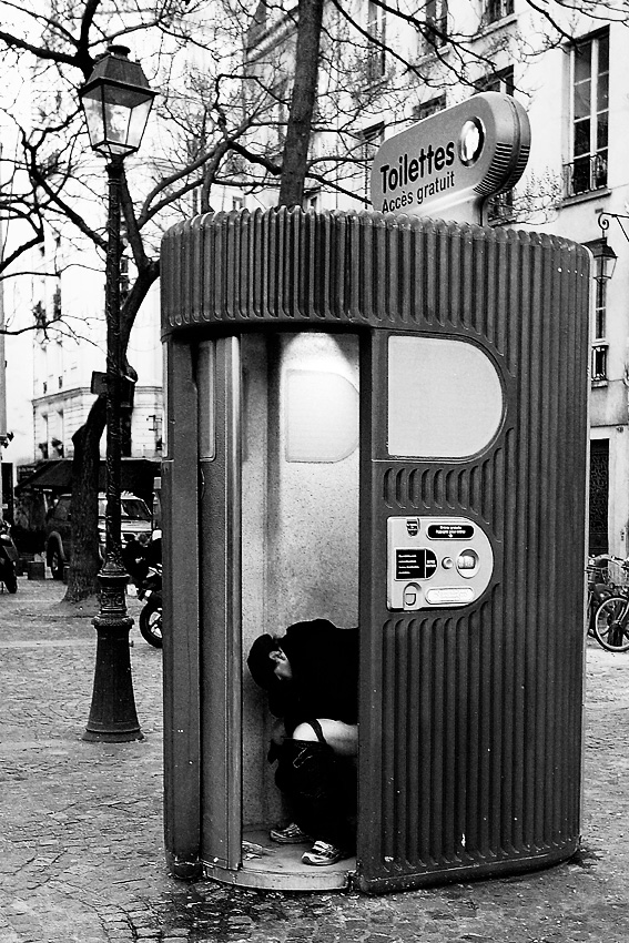 questo soggetto si prestava a mille interpretazioni, invece ho avuto paura e sono rimasto a distanza.. avrei potuto e dovuto aspettare il momento migliore, magari includendo un incurante passante.. oppure spingermi più dentro la scena, o riprendere la faccia schifata di un altro passante o l'espressione ingenuamente divertita, magari anche canzonatoria, di un ragazzino...potevo fare mille cose e mi sono limitato a riprendere la scena senza interpretarla. poi è chiaro che il soggetto ha una sua forza espressiva e quindi, anche da solo, comunica qualcosa, ma non basta. questo è il confine che c'è tra una buona foto ed una gran foto.