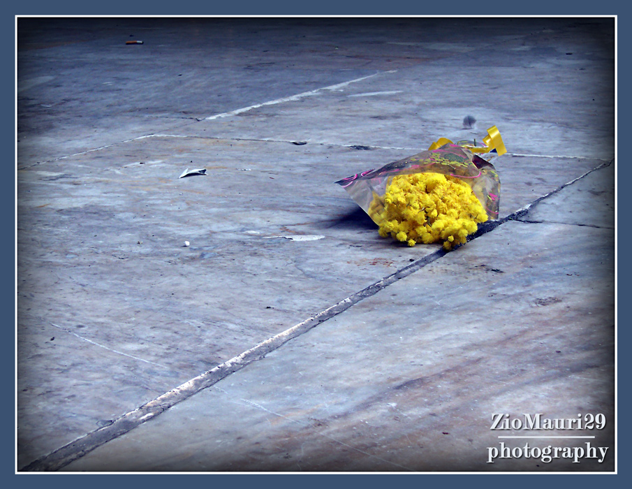 Oh Zio, bella..... c'è poco da dire Smile Gli effetti e il colore del pavimento lo fanno diventare "tagliente" .. e la mimosa lì per terra .. pare pure stropicciata non è una cosa "melliflua" da festa della donna .. anzi! .. ripeto: bella! .. naturalmente è impressione non tecnica ma di impatto .. di tecnico non saprei darti consigli Very Happy Ciao!!