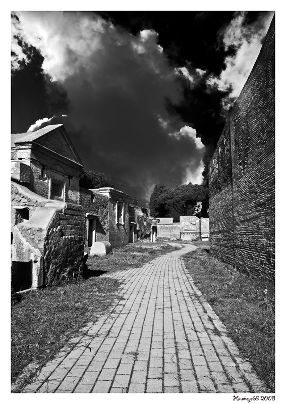 Il contrasto, quasi esasperato, imprime un senso di drammaticità che ben si sposa al contesto (mi pare si tratti di una necropoli).