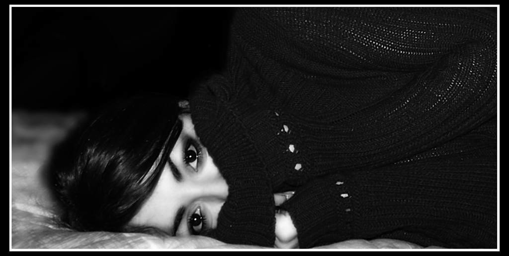 Quello che mi attira in questa foto è il contrasto fra il nero del maglione, dei capelli e, soprattutto, degli occhi ed i toni chiari della pelle.