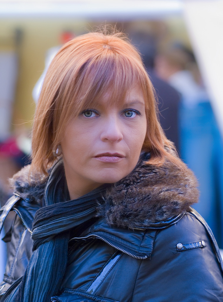 | bello scatto, spettacolari i colori degli occhi, dei capelli e del viso che hanno a contraltare il blu riflessato del giubbino! |