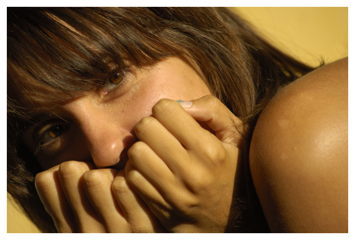 La composizione in se mi piace, taglio e colore gradevole, la parte destra in ombra della modella non disturba, ma rende l'aria misteriosa come le mani che coprono le labbra.
