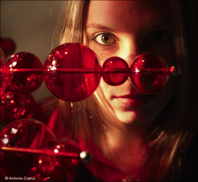 Bellissime le tonalità rossastre della foto. E l'idea dei "cosi" rossi che ci trasportano in un regno intimo. Espressiva la modella.