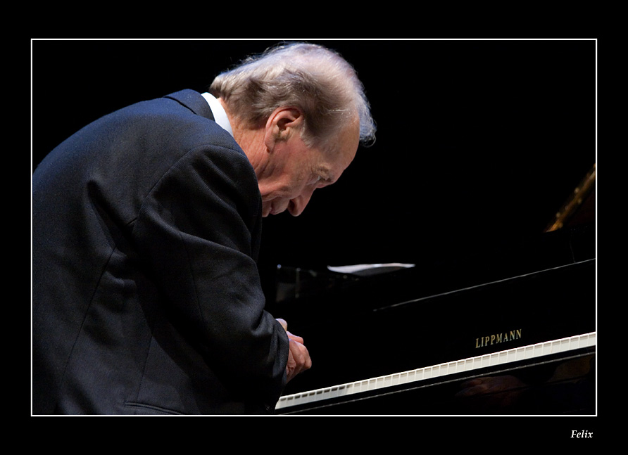 ..è rimasto per ben mezzo minuto in questa posizione dopo aver eseguito uno standard jazz con matrice blues; alla fine dell'esecuzione ha "ringraziato" così il suo piano..
