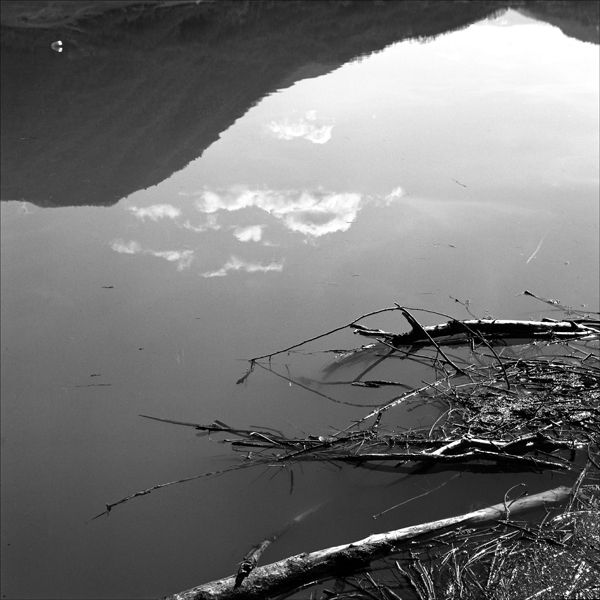 mi piace che l'immagine di una natura viva sia solo un riflesso, mentre in primo piano, reale, c'è solo natura morta: rami secchi e acqua... forse sterile.