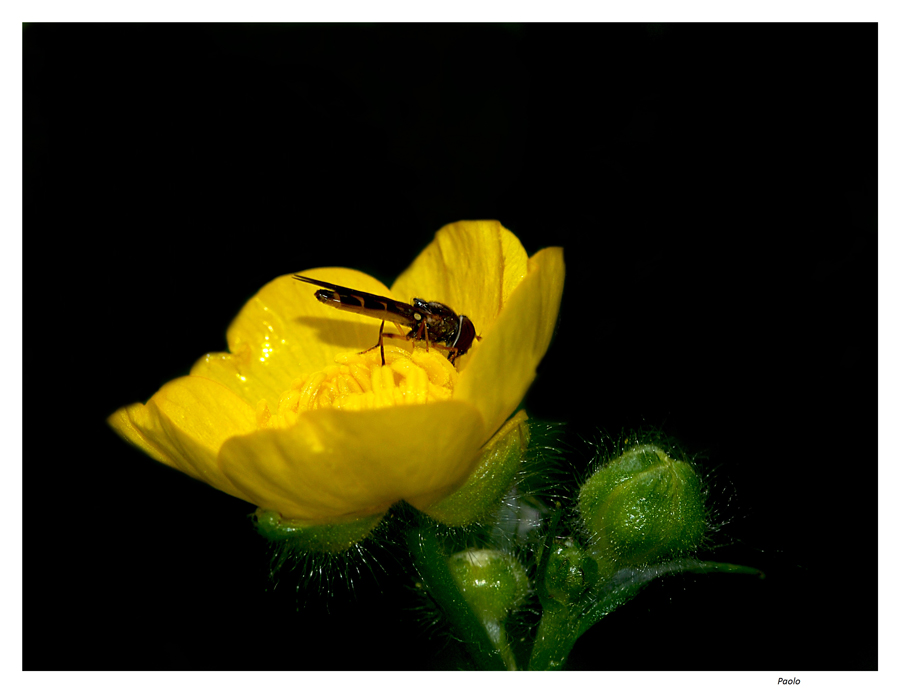 Da parte mia invece trovo molto bello lo sfondo nero, dove il giallo del fiore risalta perfettamente. Buona nitidezza d'insieme e attimo colto prontamente. Tiziano |