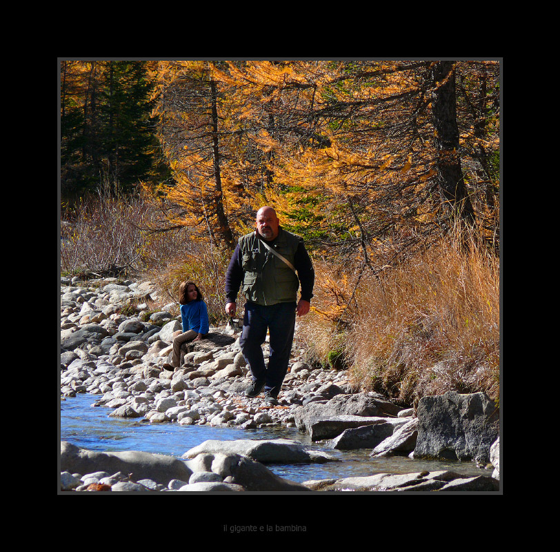 La bimba è distratta da chissàcosa ed il gigante avanza incurante verso il photografo, ma guarda alla sua sx. solo questo piccolo dettaglio deve fare riflettere.
