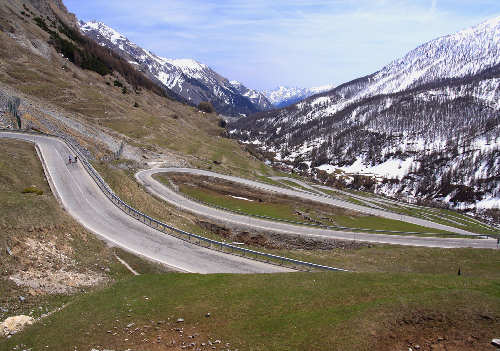 Bellissimo paesaggio ripreso ottimamente. La scena oltre che dai tornanti è impreziosita dalle minuscole figure dei ciclisti. Complimenti!