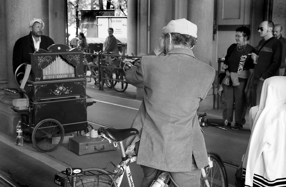 se non fosse per alcuni elementi troppo "moderni" con un bel lavoro di invecchiamento sarebbe una stupenda foto d'epoca. mi piace molto avrei però forse escluso i tre soggetti sulla destra.