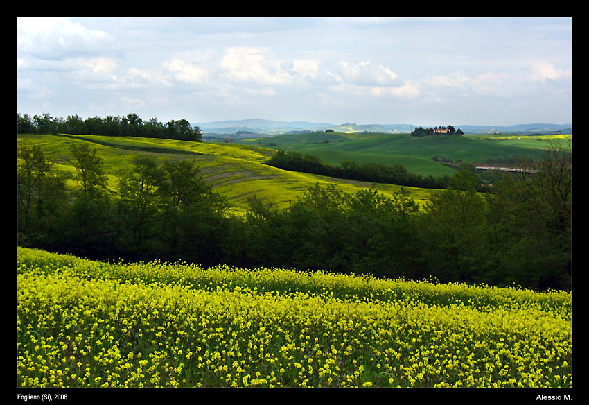 Una piacevole istantanea di un bel paesaggio toscano che però risente negativamente delle condizioni di luce sfavorevoli, sarebbe bastato uno squarcio di sole in mezzo ai campi e magicamente la foto avrebbe acquistato profondità.