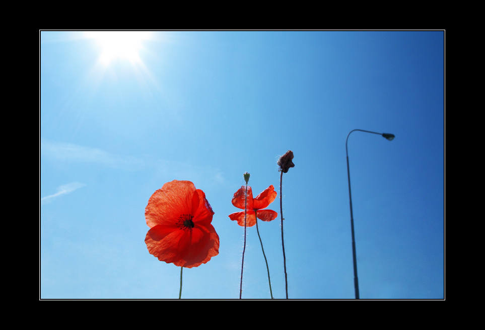 Per quanto riguarda il lampione, ho deciso di mettere questa (ne ho anche senza) perchè mi ha colpito la sequenza in diagonale dal papavero in tutto il suo splendore verso il lampione, passando per quello secco.
