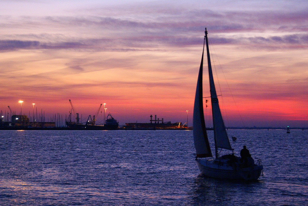 Mi sarei spostata leggermente più a sinistra per non far coprire la struttura che si intravede all'orizzonte dall'imbarcazione in primo piano. Wink