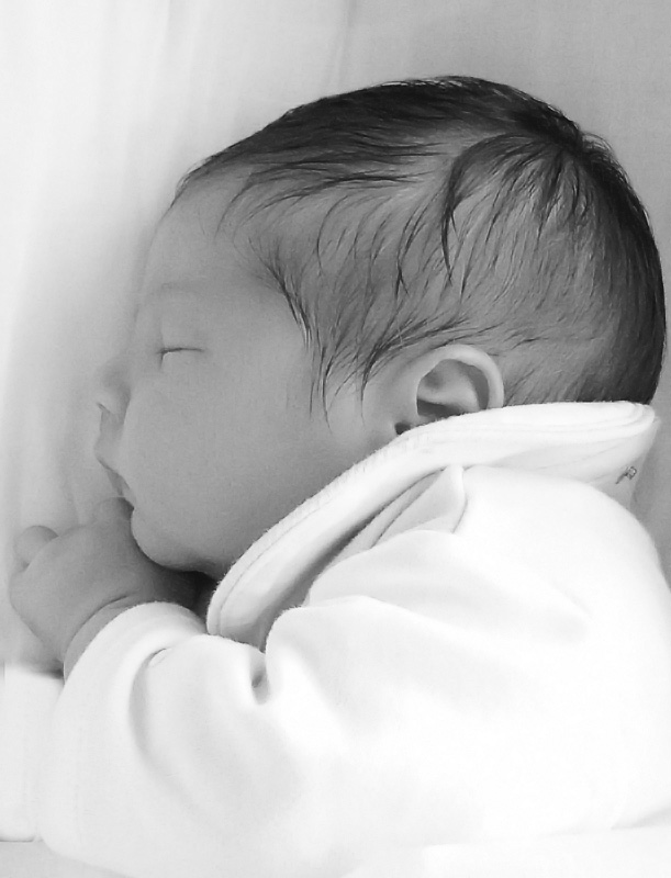 Ho tarato i bianchi un pò più alti, ma senza arrivare a bruciarli, per dare più forte il senso di purezza, quasi la tutina fosse una nuvoletta che lo avvolge.